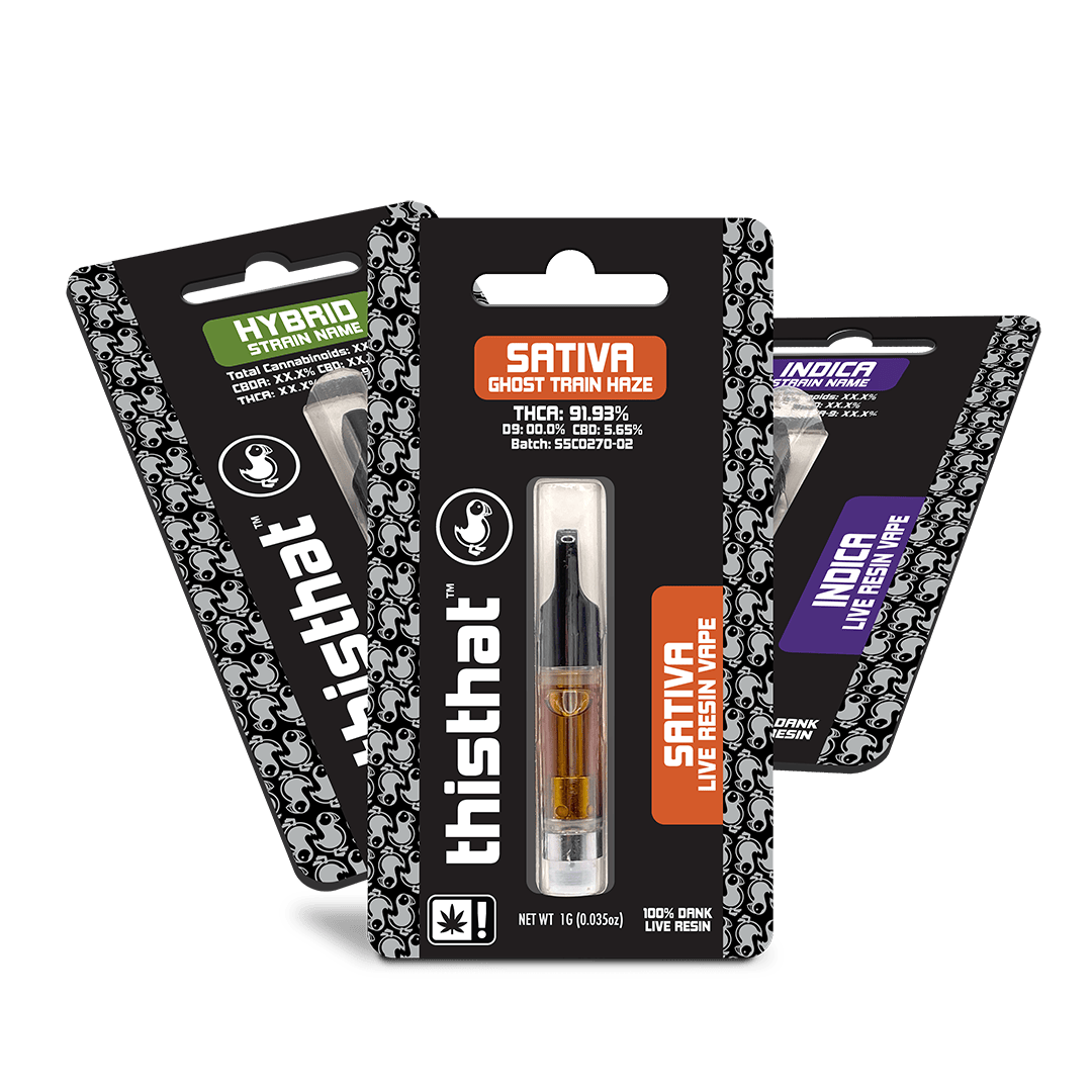 thisthat Live Resin Collection features THCa live resin carts, 1–2G disposables, and 1G drippers, all made to deliver rich terpene flavor and powerful effects. Explore top strains like Blue Dream, Runtz, and Ice Cream Cake, crafted for smooth draws, clean potency, and a premium vaping experience in every puff.