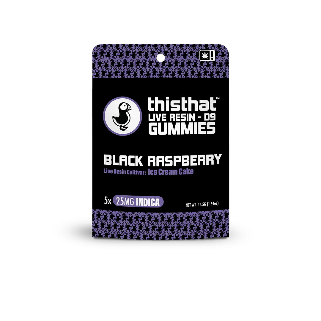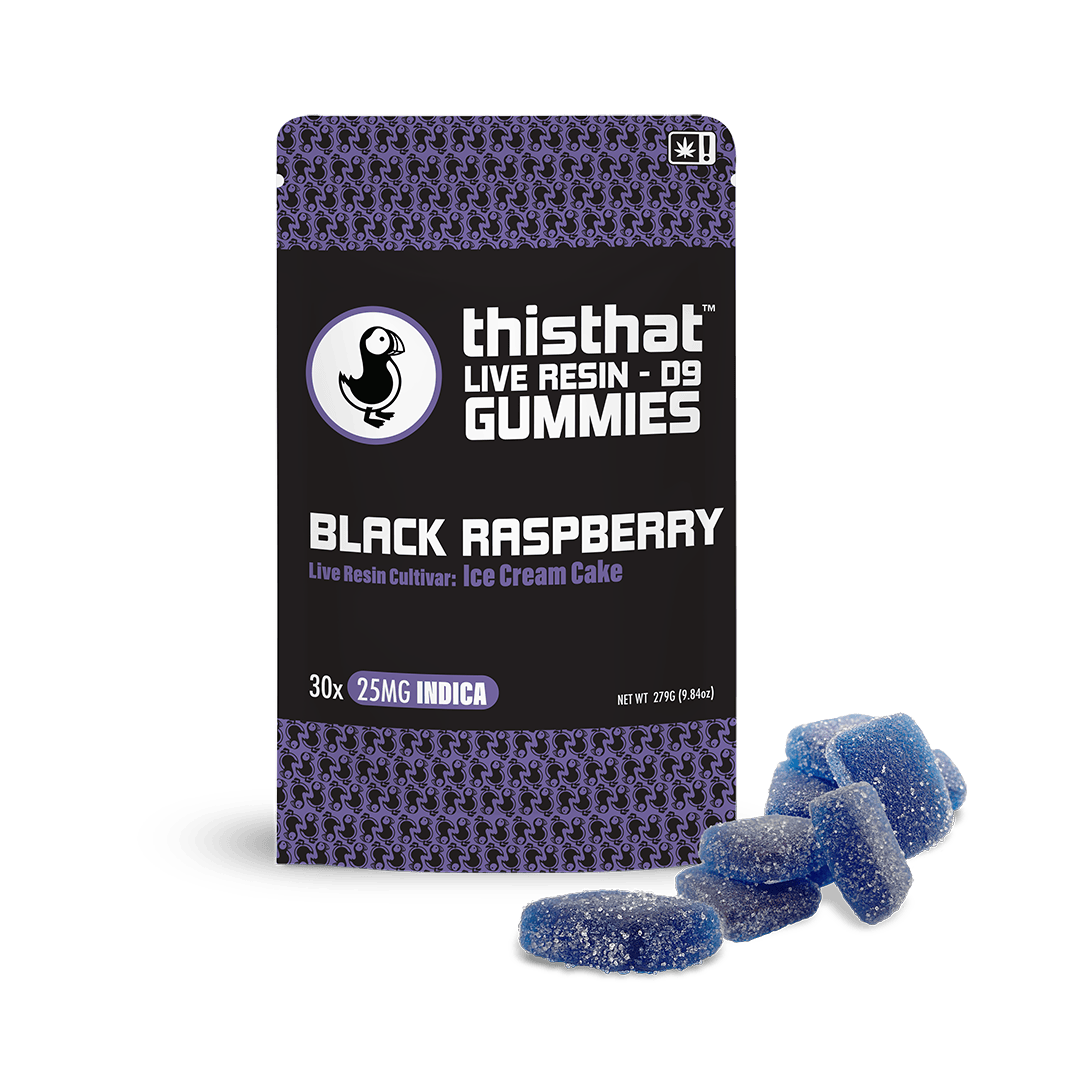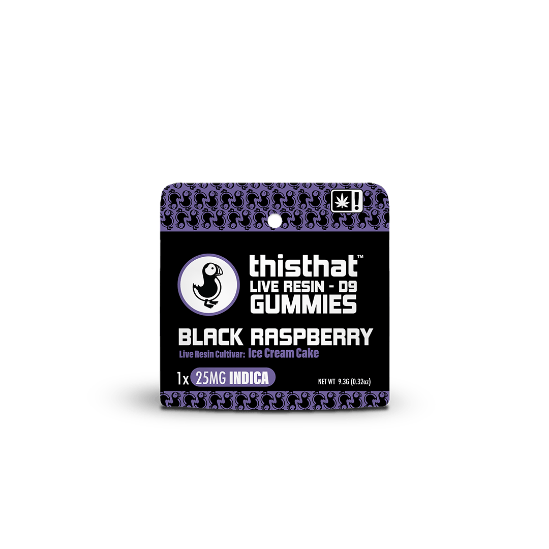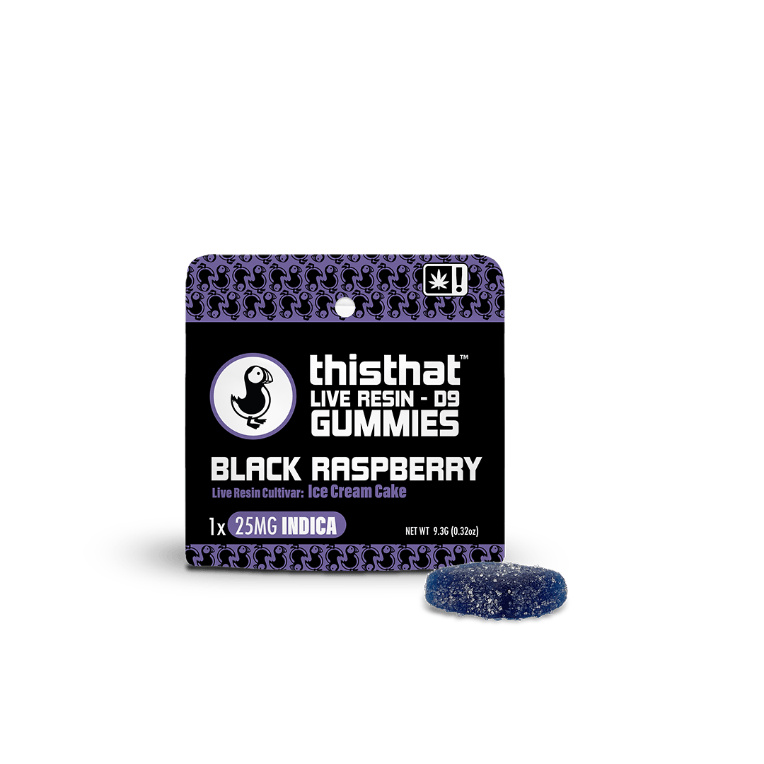 - Black Raspberry (Indica) - Featuring the celebrated Ice Cream Cake strain, these gummies provide deep relaxation, ideal for unwinding or preparing for restful sleep. The rich, sweet, and creamy flavor profile mirrors the strain’s decadent nature.
