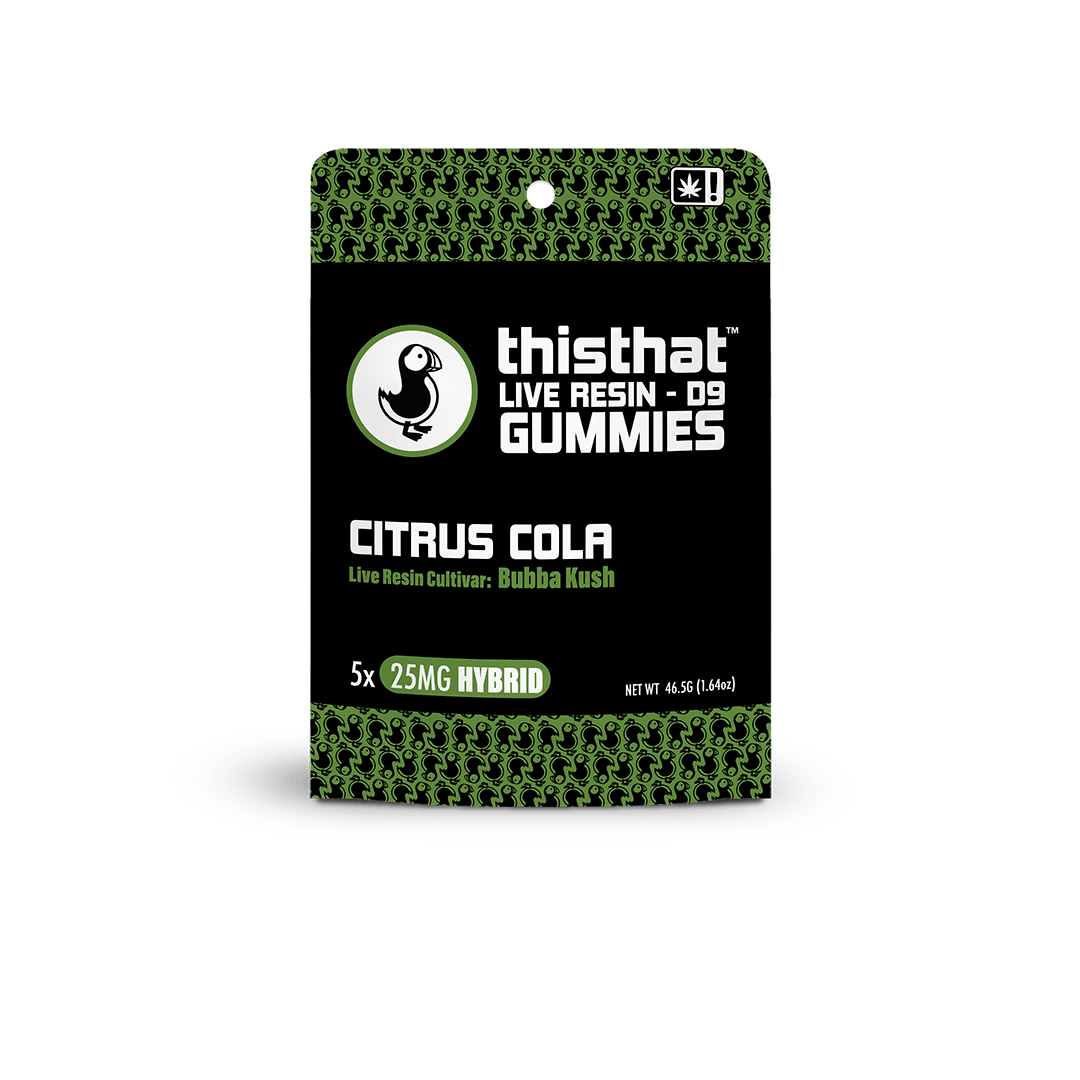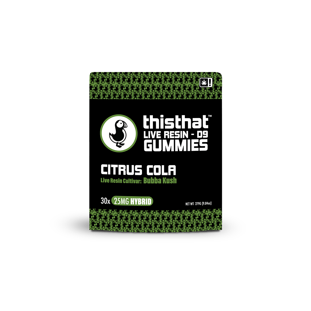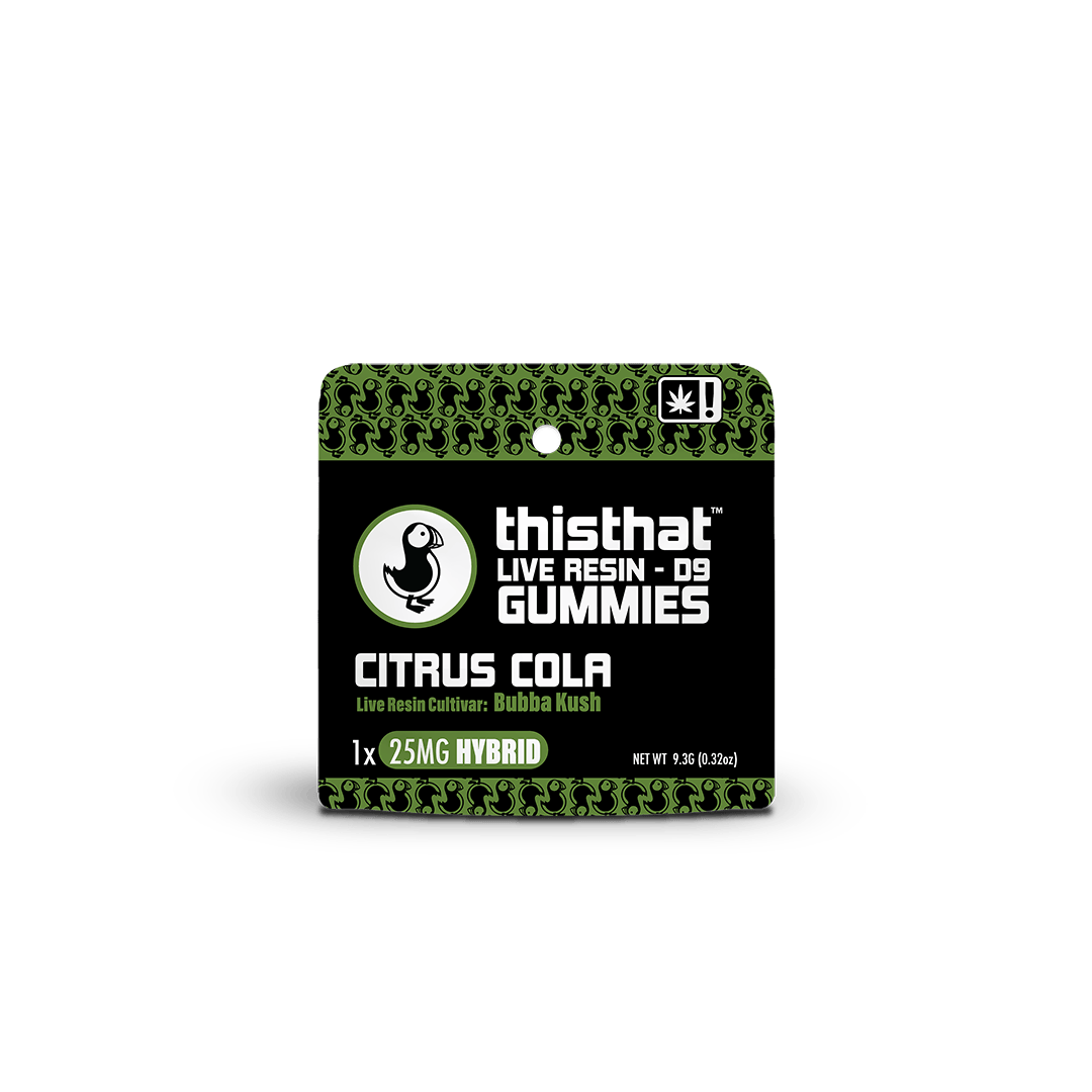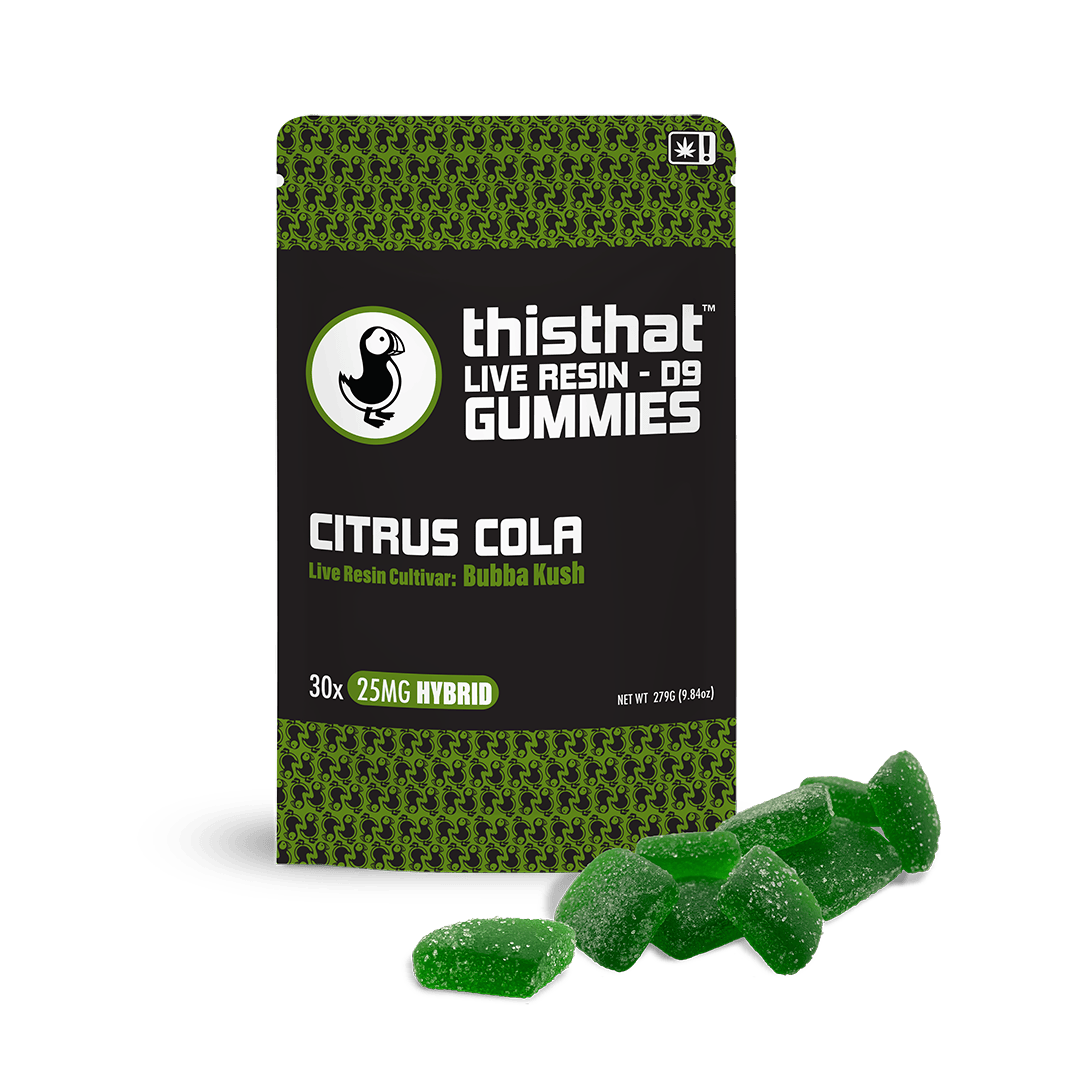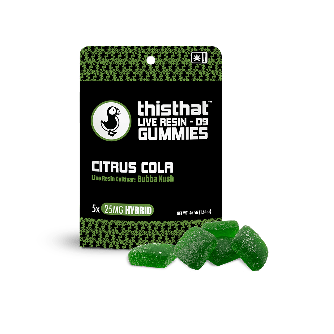 - Citrus Cola (Hybrid) - Crafted from the renowned Bubba Kush strain, these gummies deliver a balanced experience perfect for maintaining focus and calm. Expect vibrant citrus notes with a subtle earthy undertone.