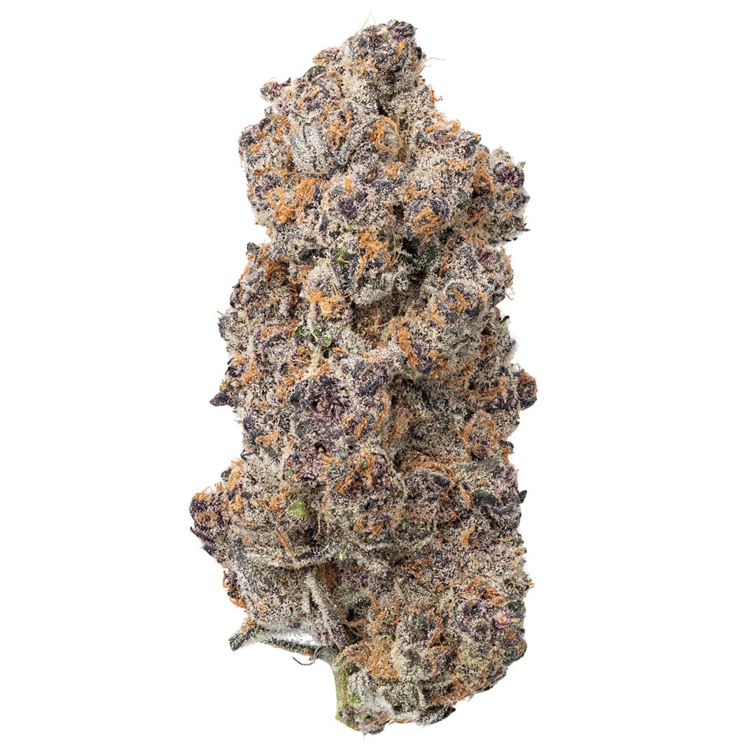 • Appearance: Frosty buds with deep amber pistils and purple undertones