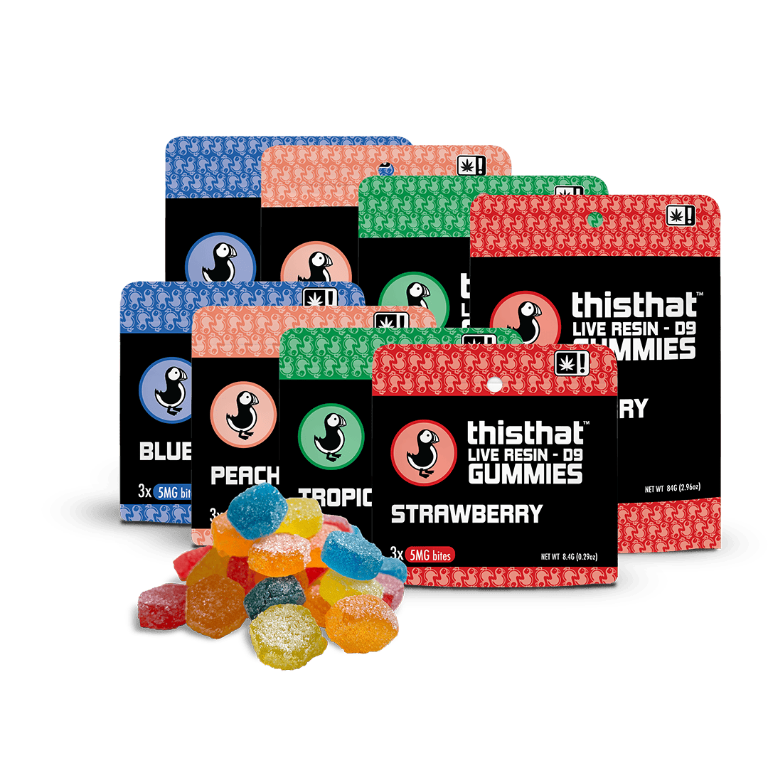 Whether you’re easing into edibles or looking for precise control over your cannabis experience, our 5mg Live Resin D9 Gummies offer the perfect balance of potency, flavor, and versatility.